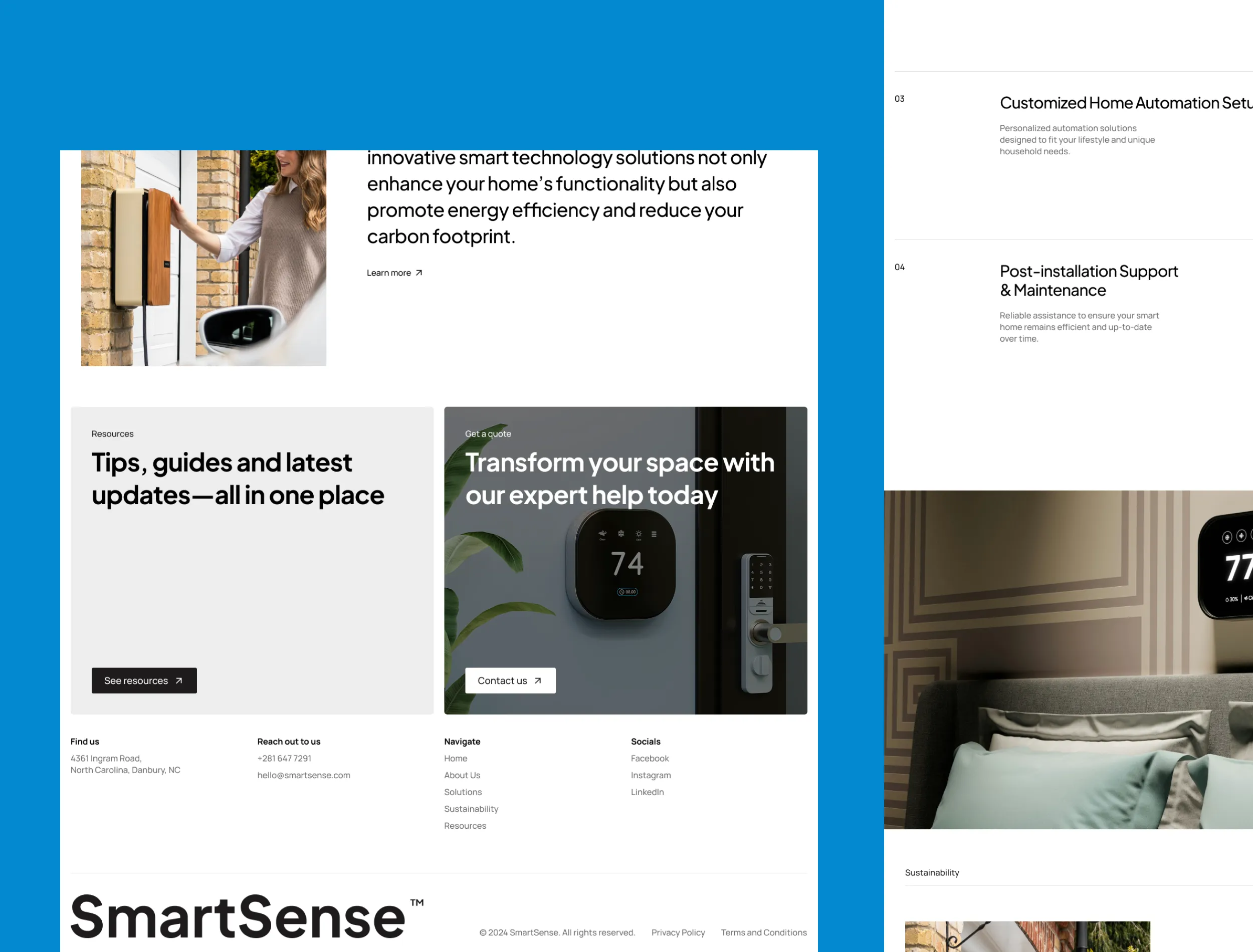 We designed a clean, calming layout that uses space, imagery, and messaging to communicate SmartSense’s value. The structure supports discovery, showcasing both design inspiration and smart home integration.